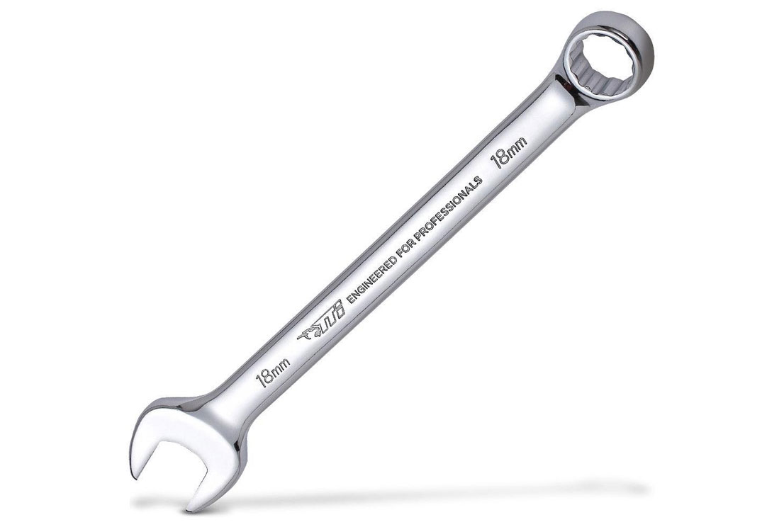 This is a TTI 18mm Metric Ring & open-end combination Spanner.